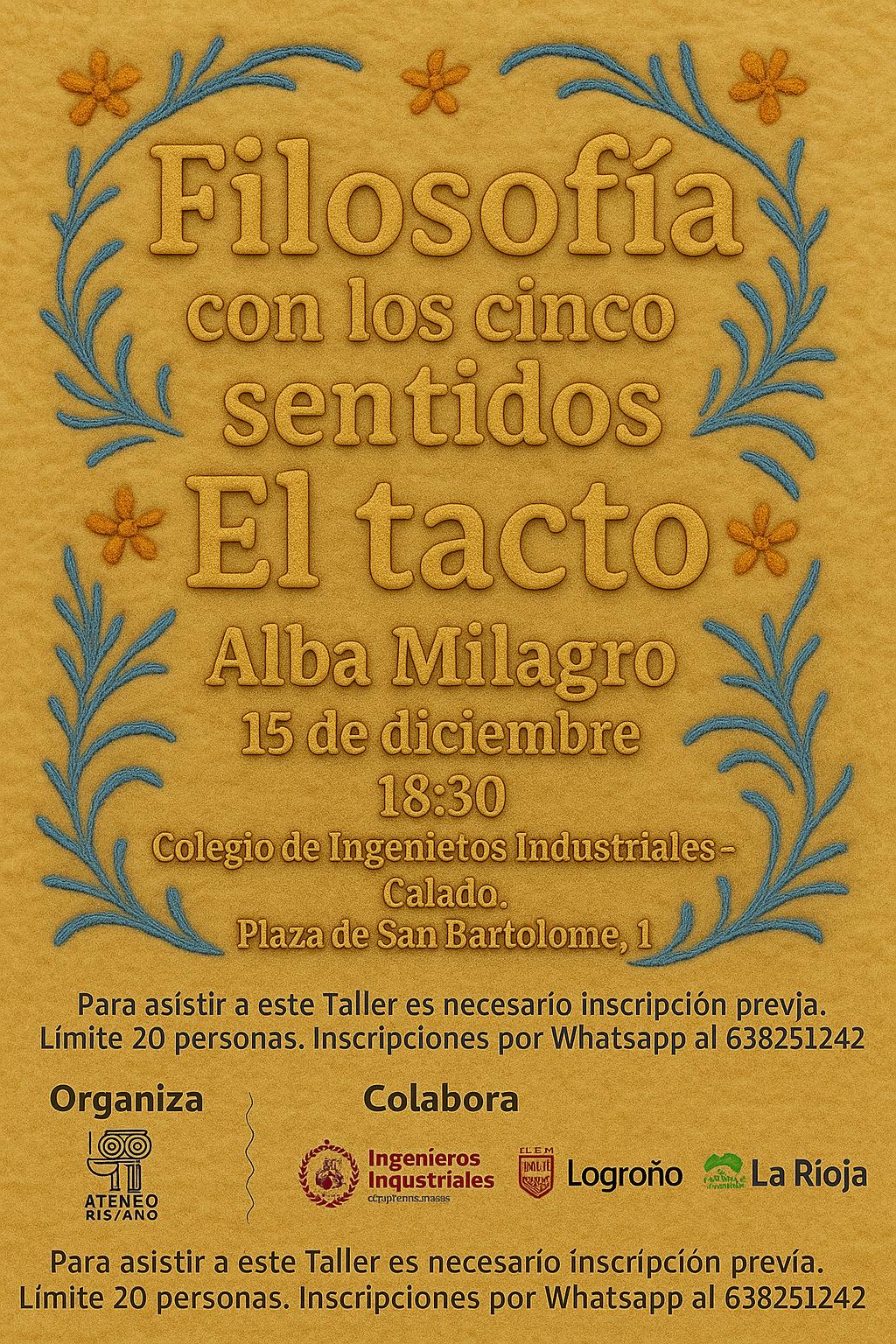 El próximo lunes hablaremos de estas y otras cuestiones a propósito del sentido del tacto. Se trata de una actividad práctica basada en el diálogo, está pensada para todos los públicos y no requiere conocimientos previos.