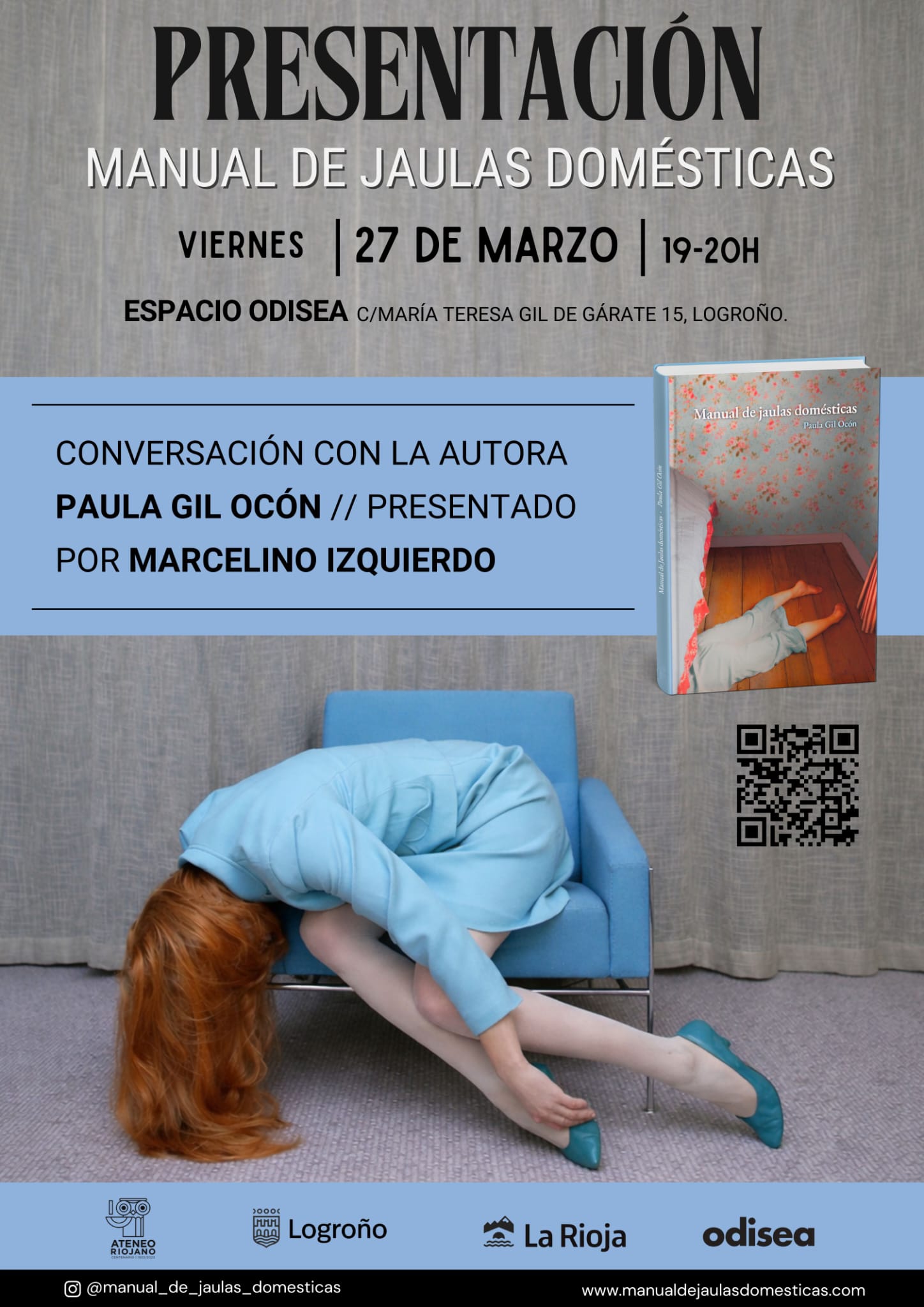 Paula Gil Ocón (Logroño, 1991) es periodista, antropóloga y fotógrafa. Ha desarrollado su trabajo entre el periodismo cultural, el diseño creativo y la investigación etnográfica, con interés en las prácticas textiles en contextos indígenas de México. Actualmente realiza un doctorado en Antropología en la Universidad Nacional de Educación a Distancia (Madrid). Manual de jaulas domésticas es su primer poemario.