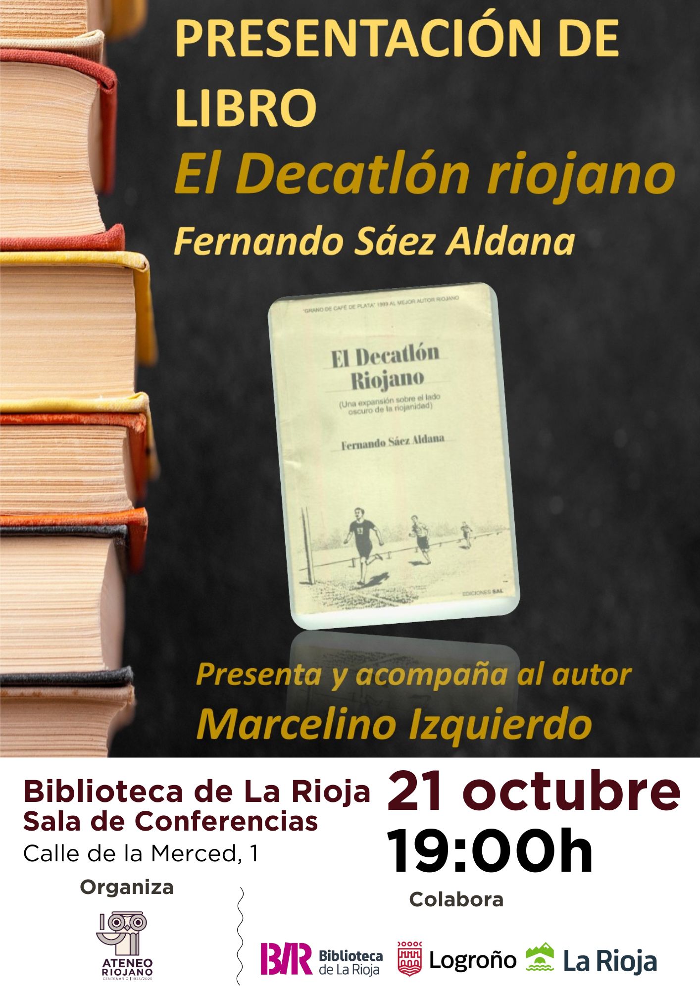 En la 7ª edición del Premio literario Café Bretón (1999) El decatlón riojano obtuvo el premio al mejor autor riojano de los presentados. Se trata de una original pieza de costumbrismo regional cuyo autor hace gala de un corrosivo del humor calificando diez malas costumbres de sus paisanos como «deportes» El librito fue editado por el autor en 2000 y presentado en el Ateneo Riojano. Veinticinco años después, ve la luz una segunda edición, que contiene tres cambios y queda integrada por las siguientes disciplinas deportivas: Lanzamiento de gargajo, Salto de semáforo, Levantamiento de vidrio, Arrastre de pimientos, 4 x 100 decibelios, Triple taco, Yincana degustadora, Marcha, Mil metros cagarruta y Pasocebring. A buen seguro, su lectura no dejará indiferente al lector y especialmente al riojano, «ese privilegiado ser cuyos peores vicios y defectos son, se conoce, hijos bastardos de sus mejores virtudes».